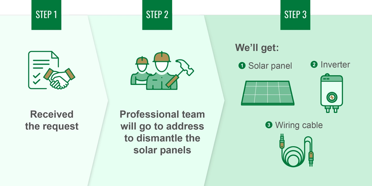 Upon receiving your service request, our experienced team promptly dispatches skilled technicians to your location. We specialize in safely and efficiently dismantling key components—including solar panels, inverters, and wiring cables—ensuring minimal disruption to your operations. With a focus on professionalism and environmental responsibility, we handle every step on-site to prepare materials for recycling or disposal.